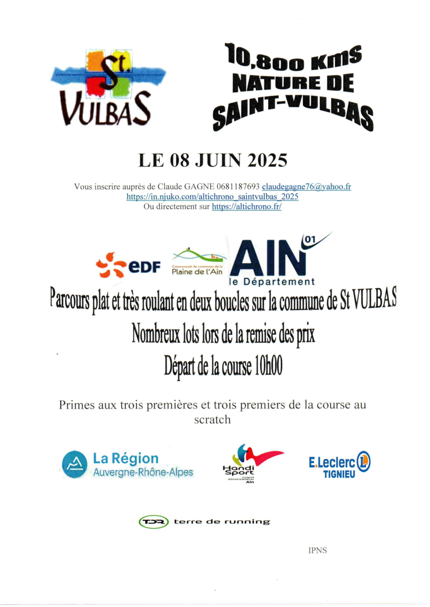 Règlement - 10,800 kms Nature de Saint Vulbas - 08 juin 2025 -