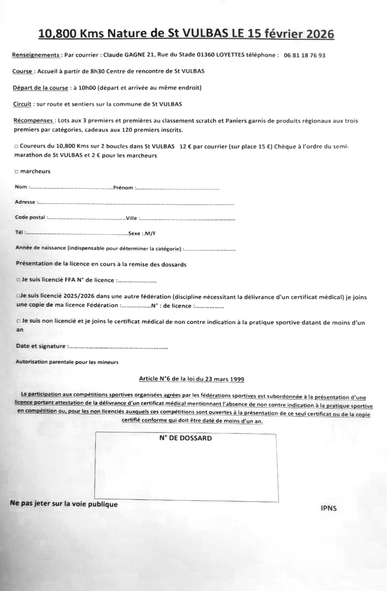 Inscription - 10,800 kms Nature de Saint Vulbas - 15 février 2026